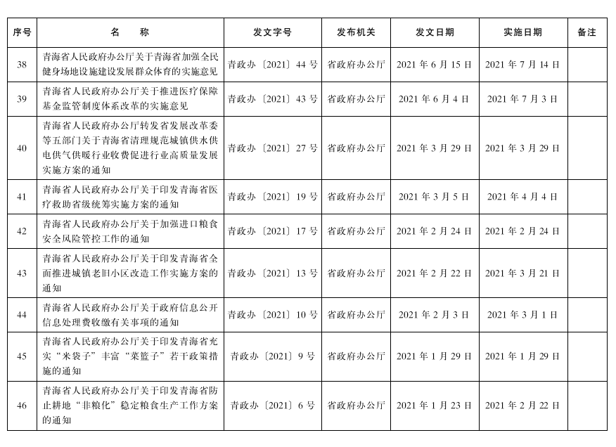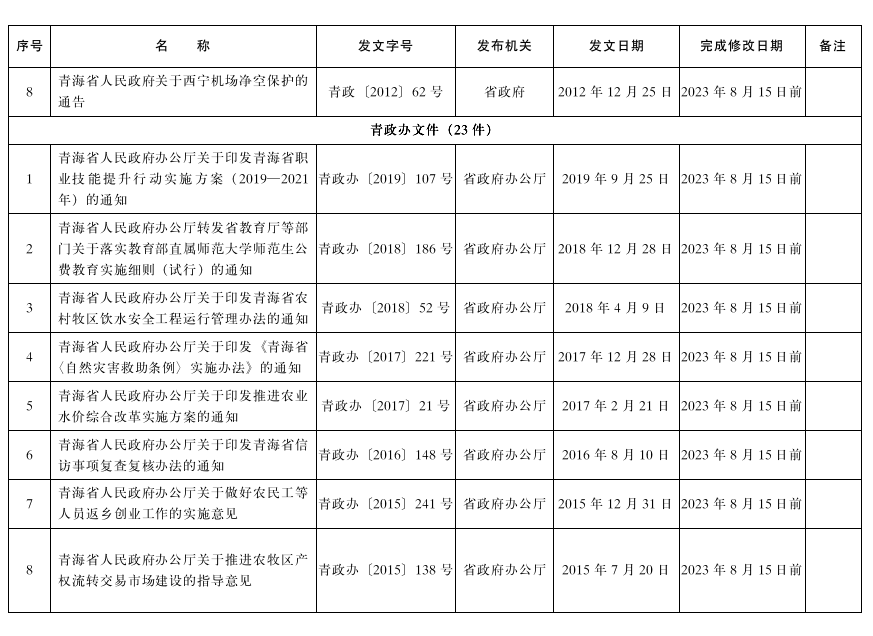 青政〔2023〕13號(hào)《青海省人民政府關(guān)于公布省政府及省政府辦公廳行政規(guī)范性文件清理結(jié)果的通知》